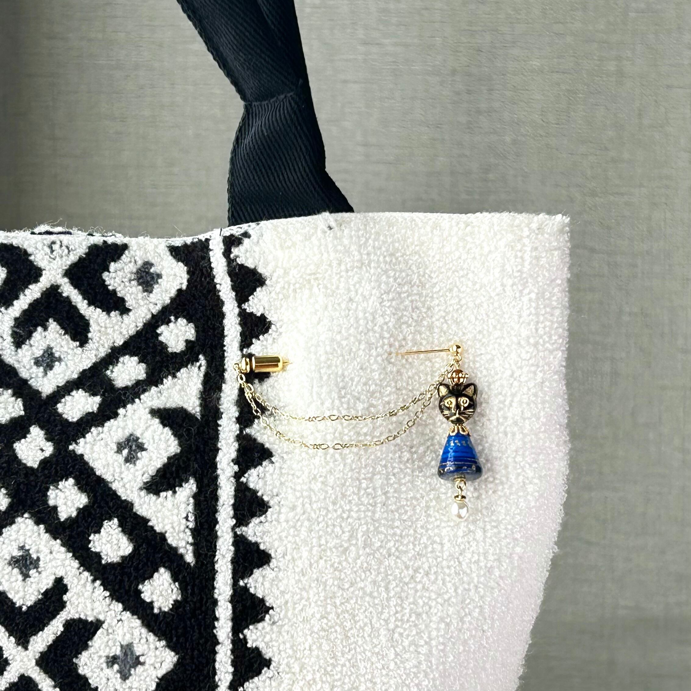 王冠をかぶった猫のハットピン・ブローチ 和紙 猫 ネイビー ギフト